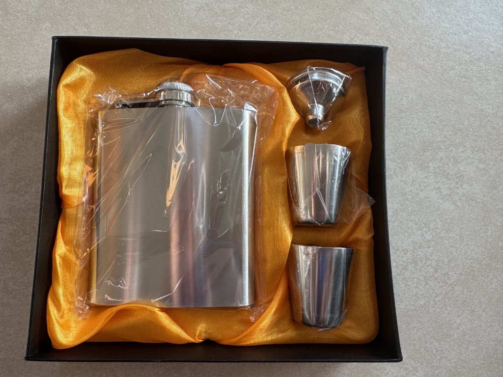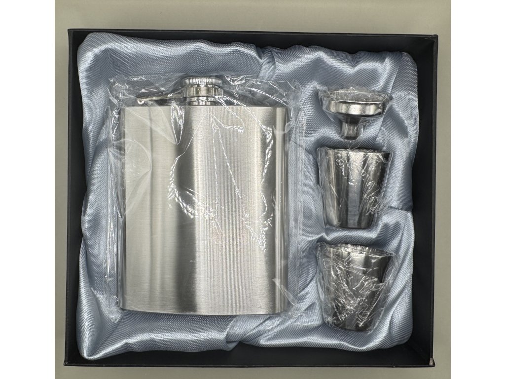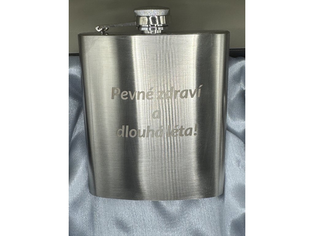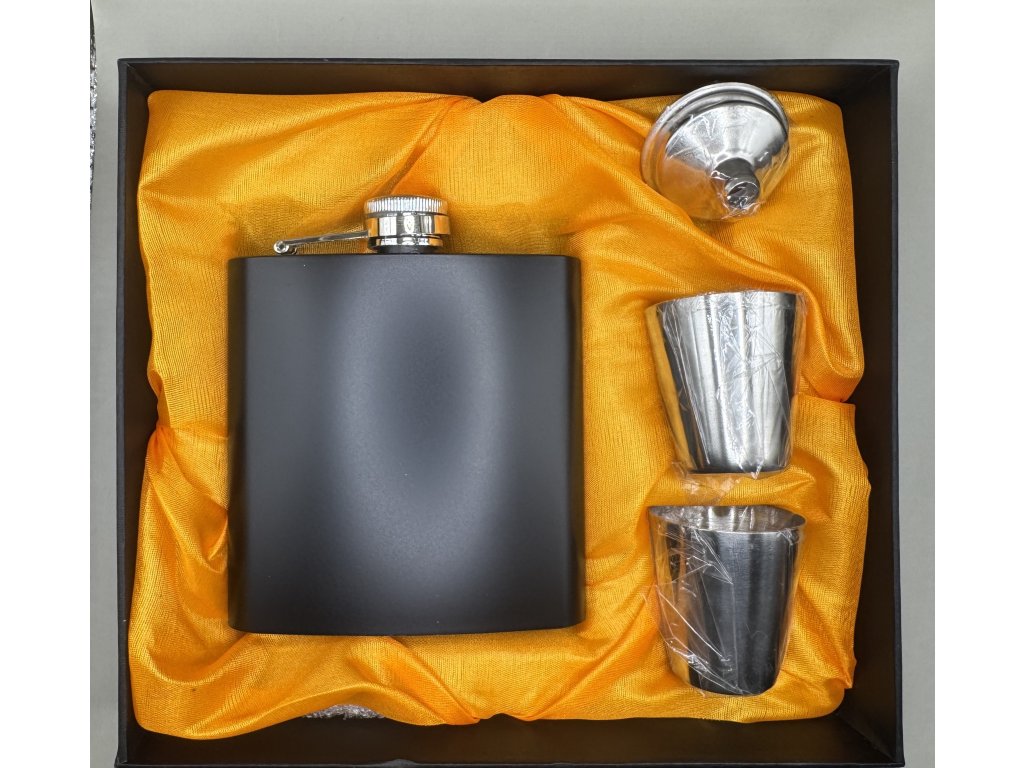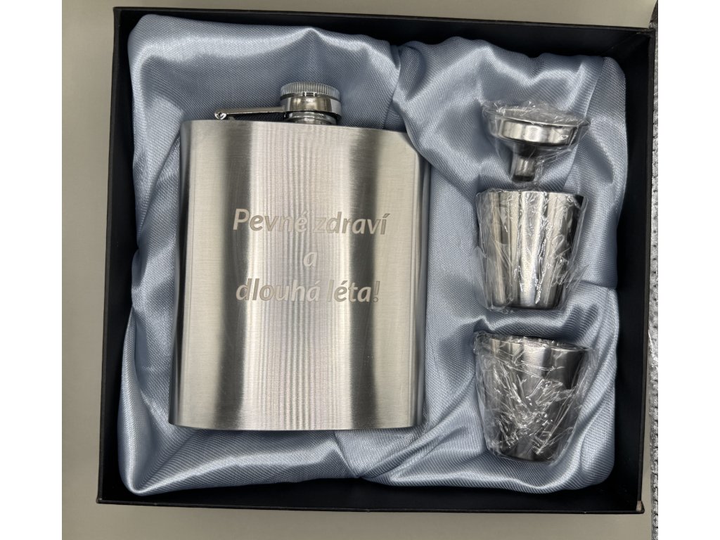 Dárková sada placatka s panáky a nálevkou. Nápis na přání.