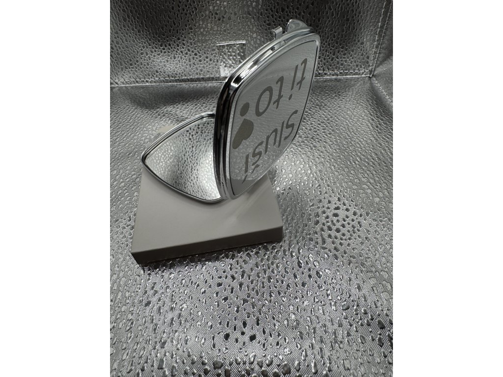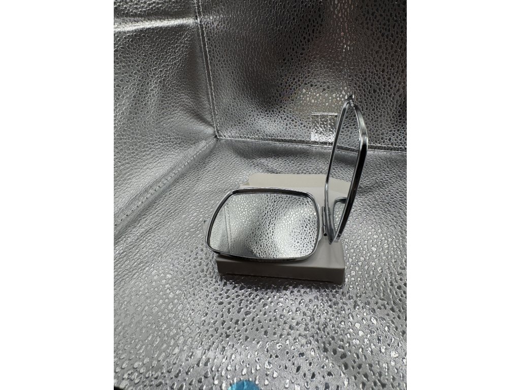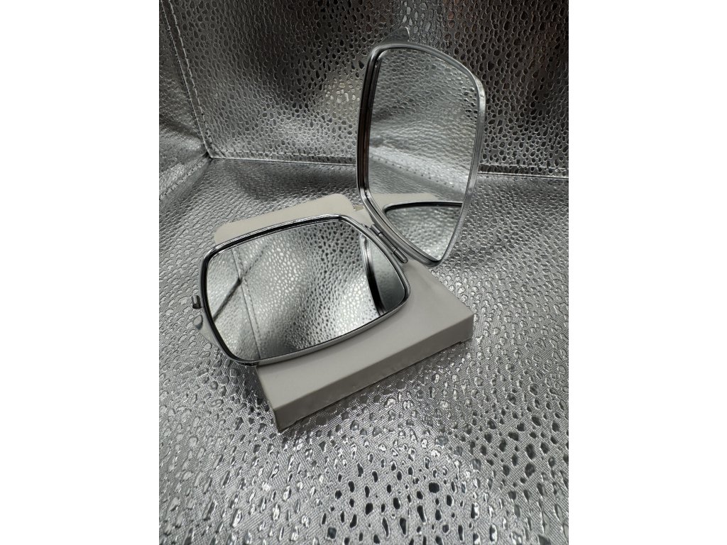 Zrcátko je vyrobeno z kvalitního leštěného kovu stříbrné barvy, který mu dodává luxusní a nadčasový vzhled. Jeho čtvercový tvar se zaoblenými rohy skvěle padne do dlaně a snadno se otevírá. Uvnitř se skrývají hned dvě zrcadlové plochy, které jsou neocenitelné pro precizní úpravy detailů, jako je nanesení rtěnky nebo úprava obočí.
