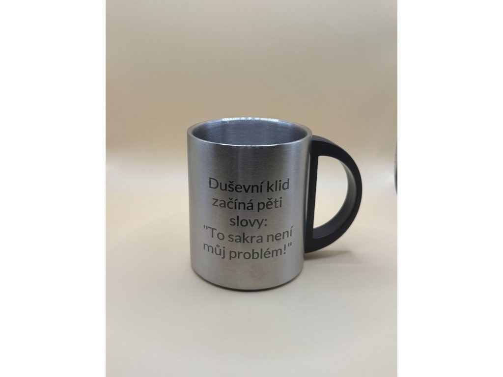 Dvoustěnný nerezový hrnek s možností nápisu na přání. Nerezový hrnek o objemu 220 ml.