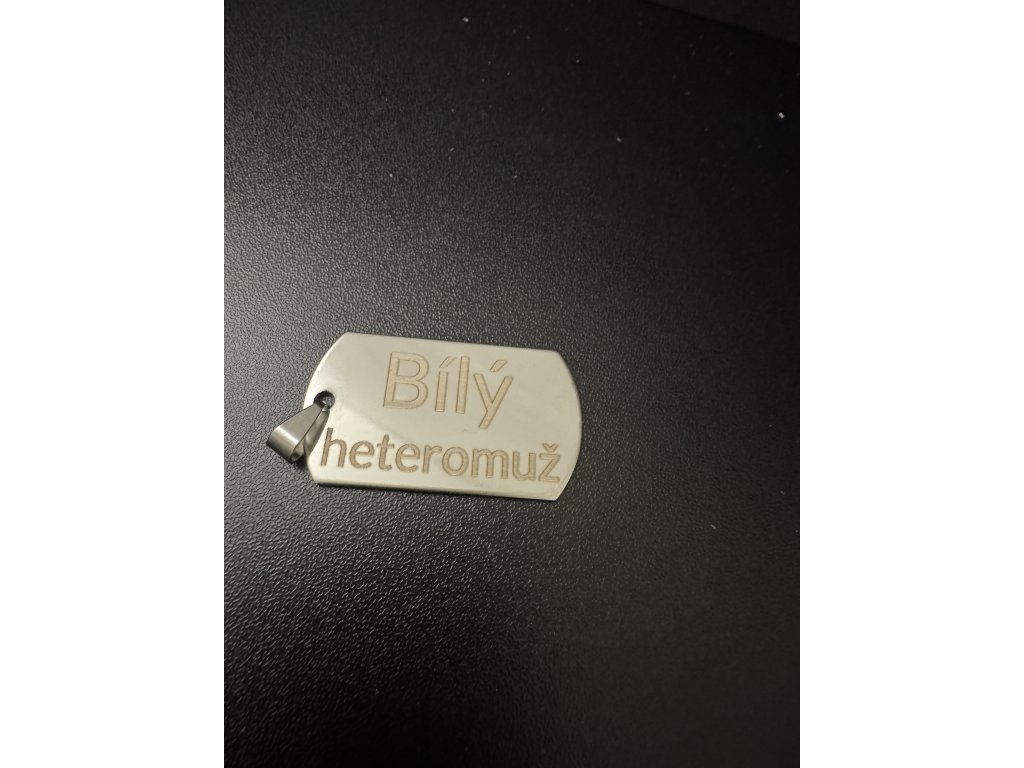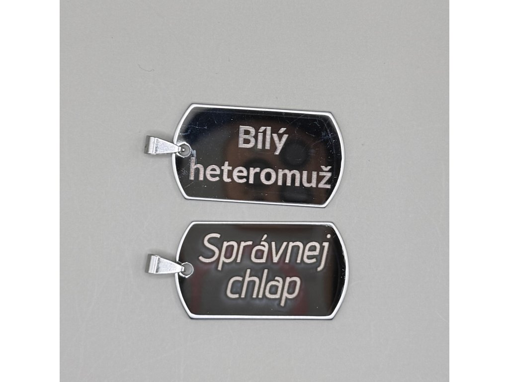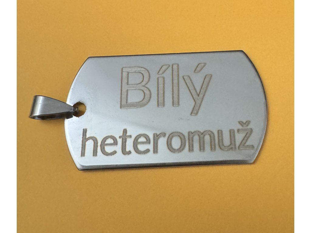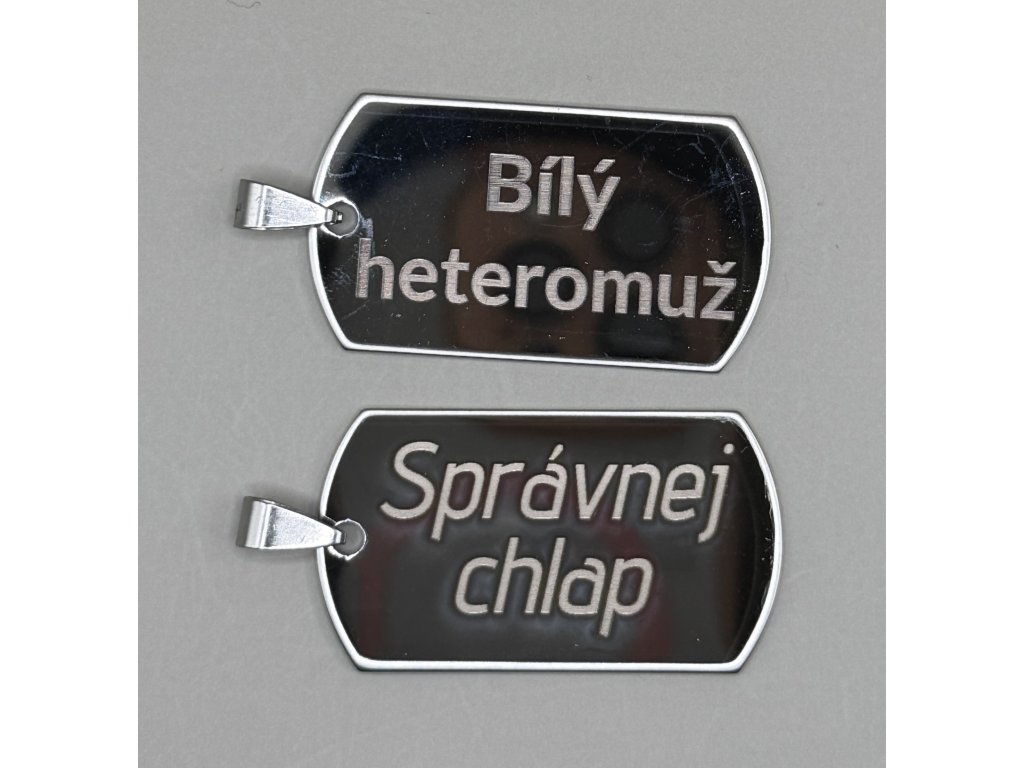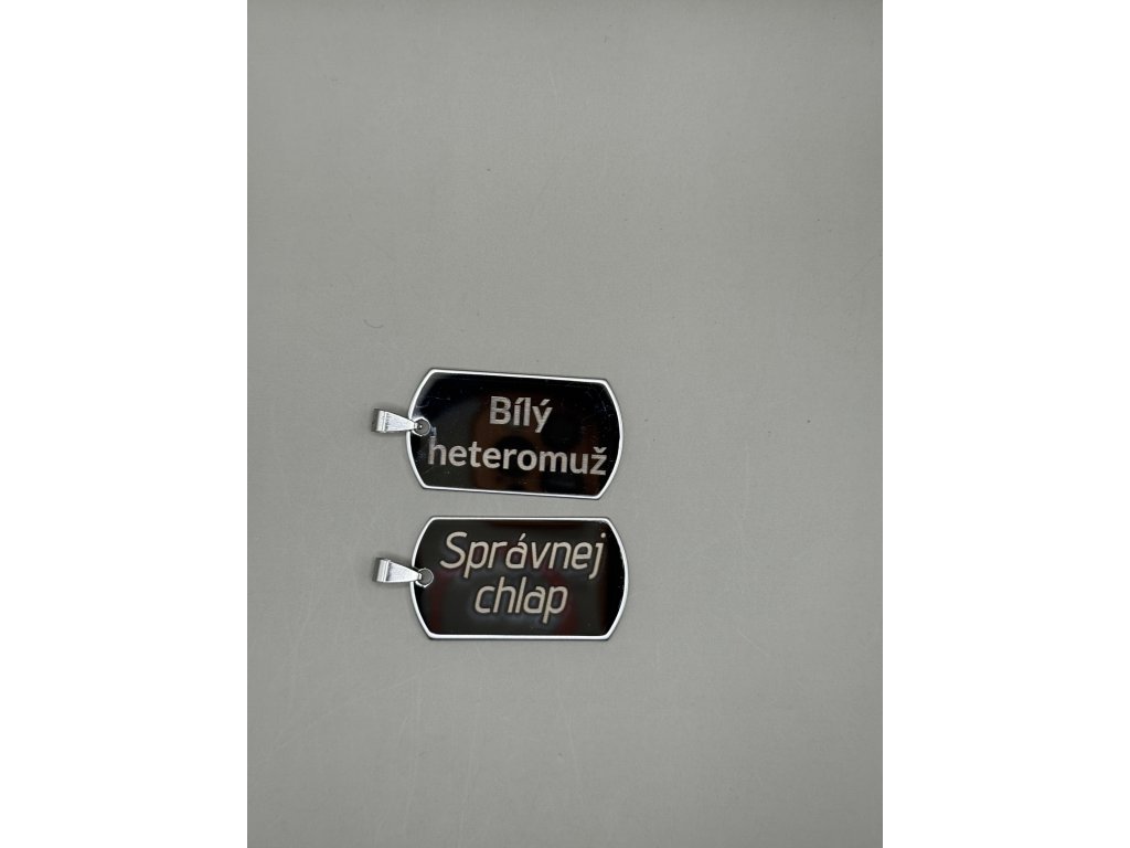 Hledáte originální a odvážný doplněk, který jasně vyjádří váš postoj? Tento pánský přívěsek ve stylu vojenské identifikační známky je přesně pro vás. Nejde jen o kus kovu, ale o silné prohlášení. S precizně vyrytým nápisem "Bílý heteromuž" nebo "Správnej chlap" dáváte svému okolí bez okolků najevo, kdo jste a za čím si stojíte. Je to šperk pro muže, kteří se nebojí být sami sebou a hrdě nosí svou identitu na krku.