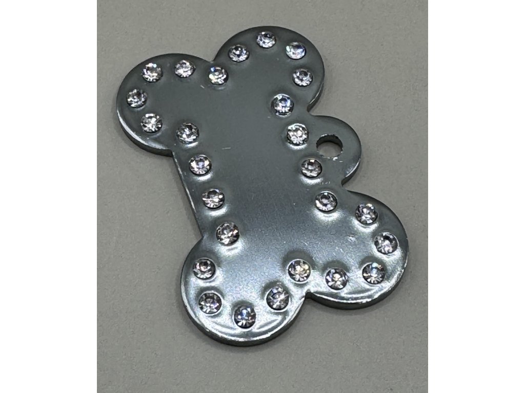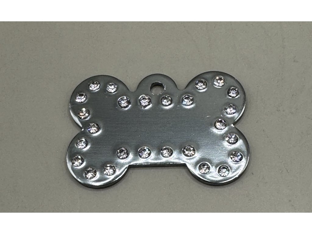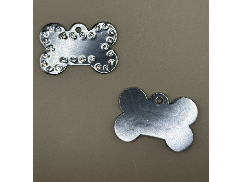 Zajistěte bezpečí svého čtyřnohého přítele stylově s naší nerezovou psí známkou ve tvaru kosti zdobenou imitací diamantů. Tento malý, ale nezbytný doplněk slouží jako klíčový identifikační prvek pro případ, že by se váš pes zatoulal. Díky možnosti gravírování na ni můžete umístit jméno vašeho mazlíčka a vaše telefonní číslo, což výrazně zvyšuje šanci na jeho rychlý a bezpečný návrat domů. Známka je navržena tak, aby byla nejen funkční, ale i elegantním doplňkem na každém obojku.