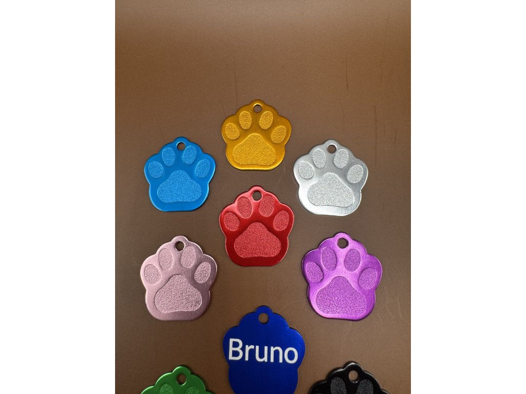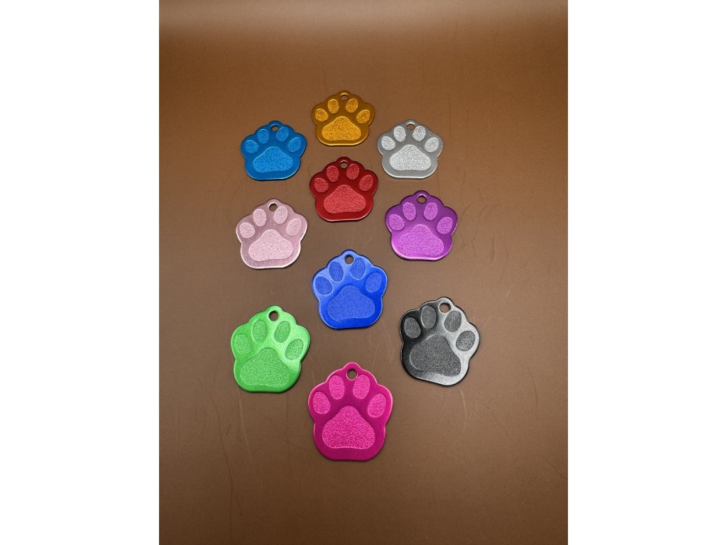 Psí známka tvar tlapka hliník různé barvy