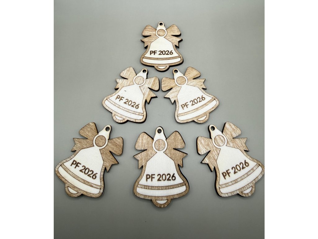 Popřejte svým blízkým, přátelům či obchodním partnerům vše nejlepší do nového roku originálním a stylovým způsobem. Naše sada šesti dřevěných zvonků s nápisem PF 2026 je ideální volbou pro každého, kdo hledá jedinečnou alternativu ke klasickým papírovým přáním. Každý zvonek je precizně vyřezán z kvalitního dřeva a slouží jako vkusná dekorace, drobný dárek nebo originální visačka, která dodá vašim dárkům osobní kouzlo. Výška je cca 55 mm.